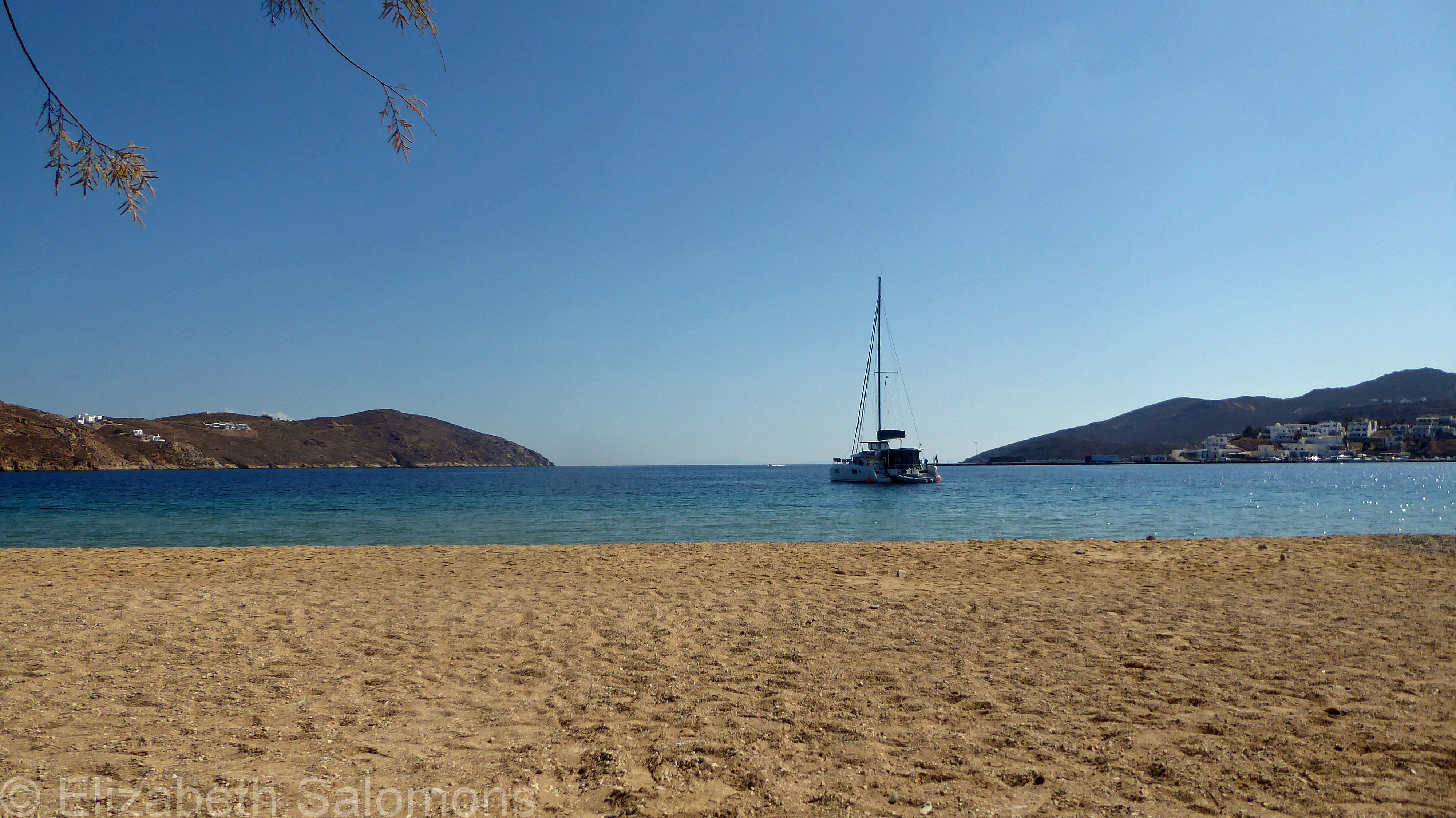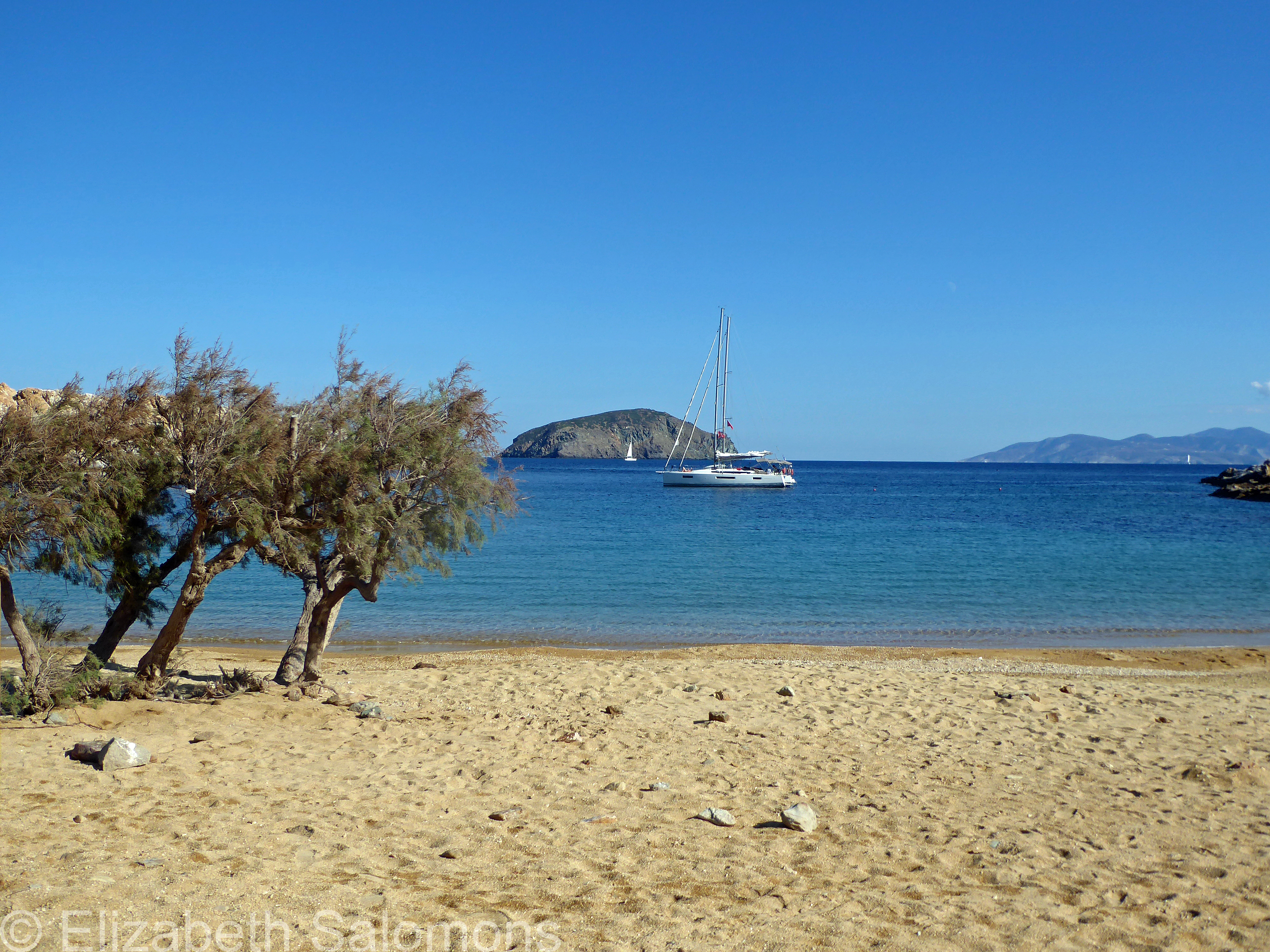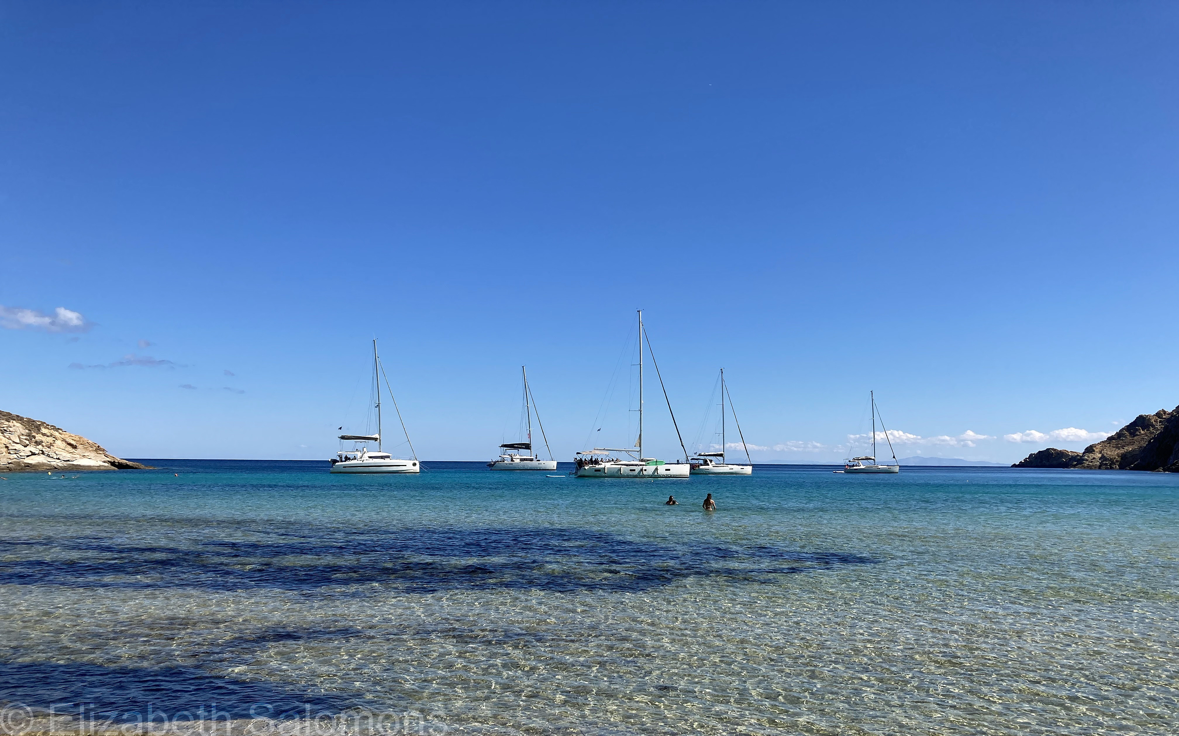 Because the cove is shallower than at Agios Sostis, the water was warmer. The bay is rather popular with the touring yachties — at one point, I counted eight sailboats anchored off shore.