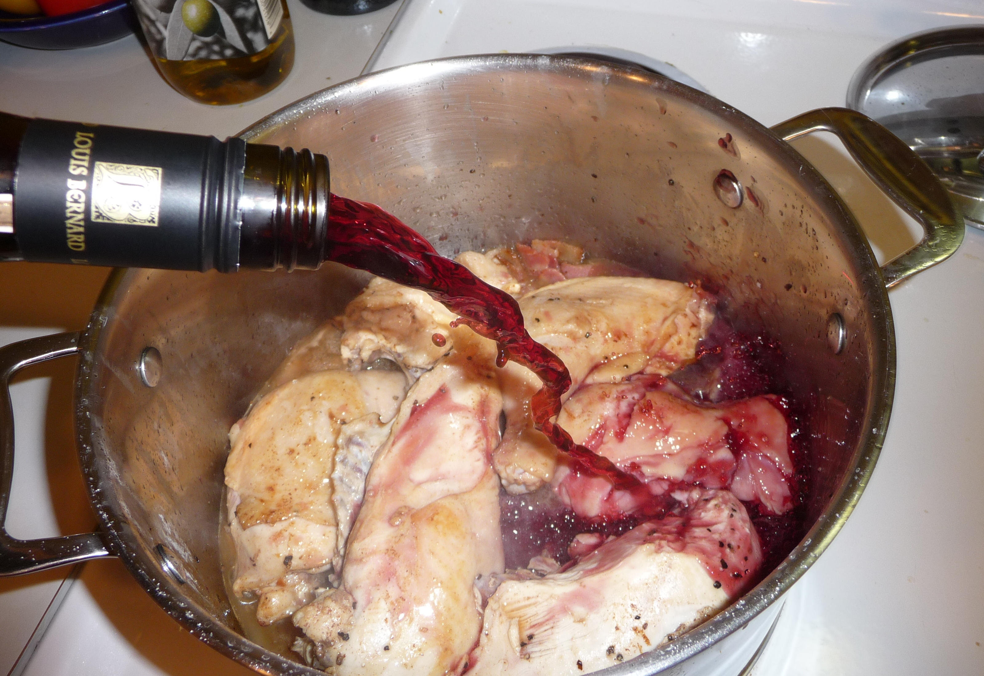 For the coq au vin, my friend wanted to use an entire chicken. I assured her the largest bird that would fit in my one, very small sauce pan was a coquelet ― a cockerel ― which are as common in French supermarkets as Cornish game hens are over here. I showed my friend how to cut up the coquelet, then left her to it. Scarcely an hour later, I was in heaven. For what is essentially chicken stew, coq au vin has amazing flavour.