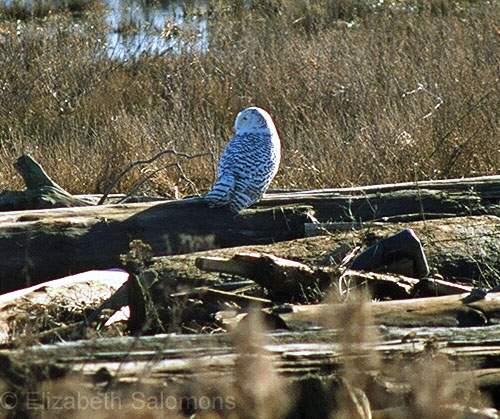 Apparently the owls make a regular appearance on the bay every four or five years. Their migration from their home north of 60° to all points south is linked to the lemming population, which makes up 90 percent of their diet. When the lemming population declines, the snowies head south.
