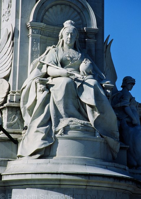 Here is a photo of the statue of Queen Victoria on the northeast side of the Victoria Memorial that stands in front of Buckingham Palace. Queen Victoria is the only other British monarch to celebrate a Diamond Jubilee, which she did way back in 1897.