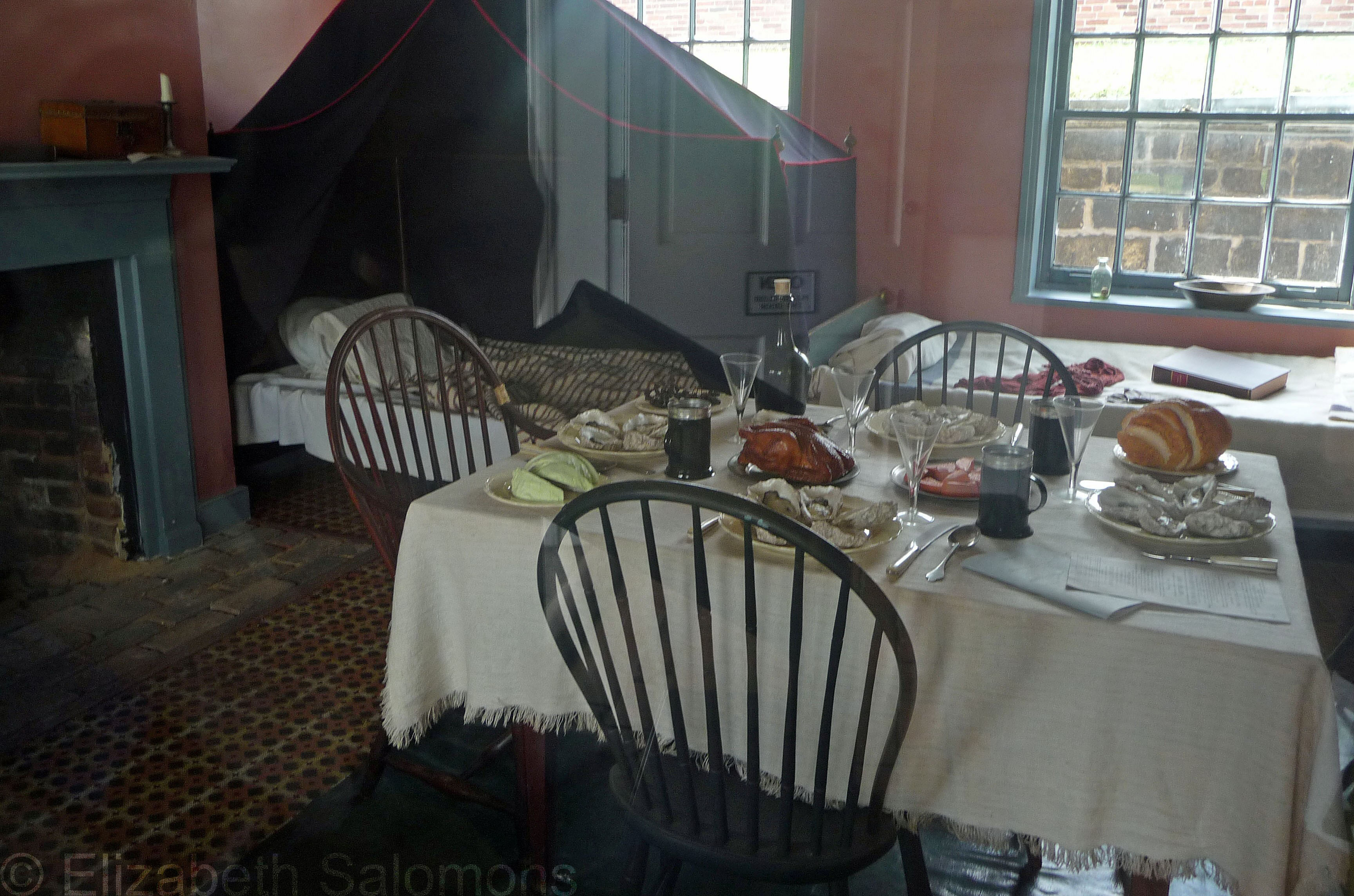 The junior officers’ quarters. Note the plates of oysters. Clearly the junior officers ate well.