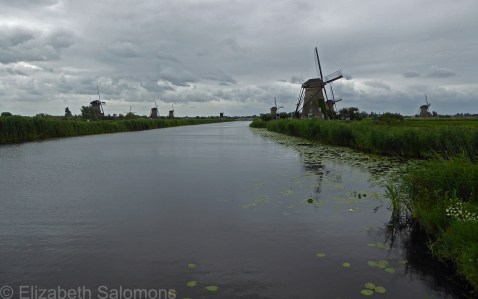 Kinderdijk means “children’s dyke” and there are a number of stories about how the name came to be. The one I like best is a simple one: the dyke that was lower than the surrounding dykes was smaller, like a child, and became known as the Kinderdijk.