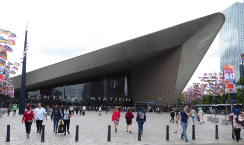 I don’t have a photo of the station I used most often (that would be Amsterdam Centraal) because the building was enshrouded in scaffolding all summer long. But here’s a look at the imposing entrance to Rotterdam Centraal, a station that was rebuilt only five years ago and, like Amsterdam, is one of the country’s busiest rail stations.