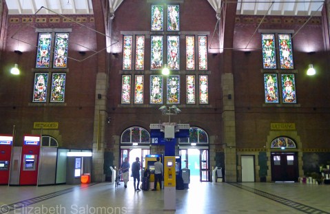 Den Haag Centraal is another of the country’s busiest stations. Note the Mondrian windows at the top right.