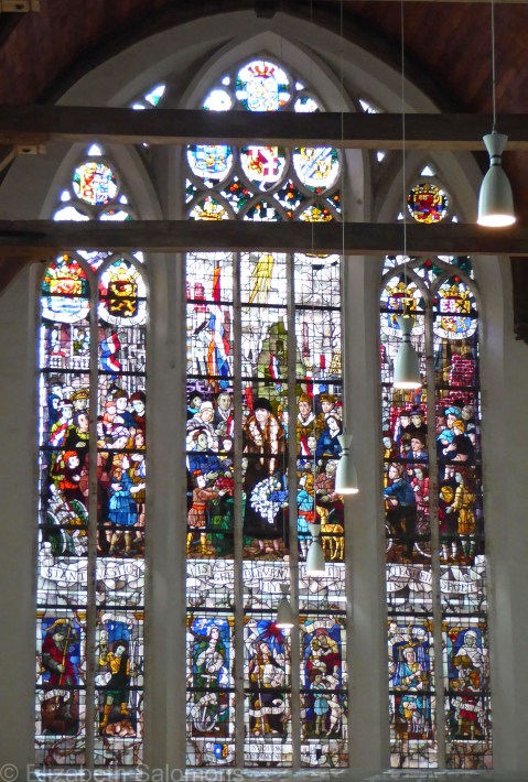 Most of the 27 windows in the Oude Kerk depict Bible stories, but a few are more nationalistic, which is understandable given the city’s long association with the Dutch Royal Family. The Liberation Window celebrates the end of World War II and the liberation of the Netherlands from Nazi occupation. The Wilhelmina Window celebrates the reign of Queen Wilhelmina from 1890 to 1948.