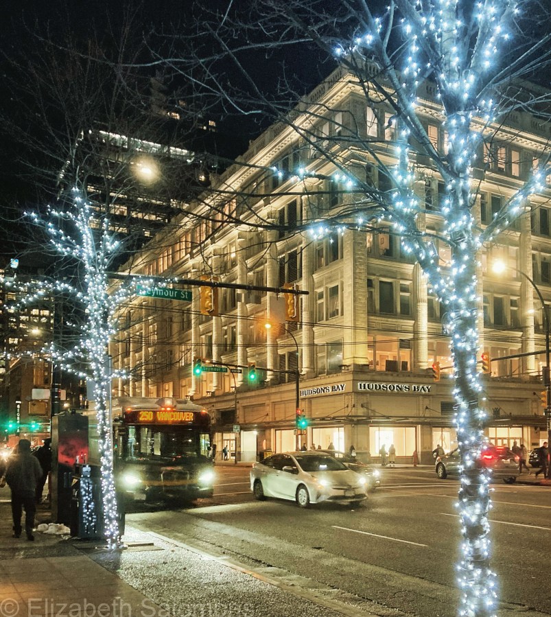 Downtown Vancouver HBC store at night