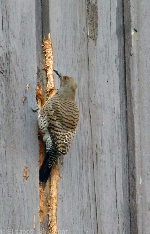 Those would be the Spotted Towhee (photo here), Anna’s Hummingbird (photo here), the Varied Thrush (sadly, no photo), and the Northern Flicker (below).