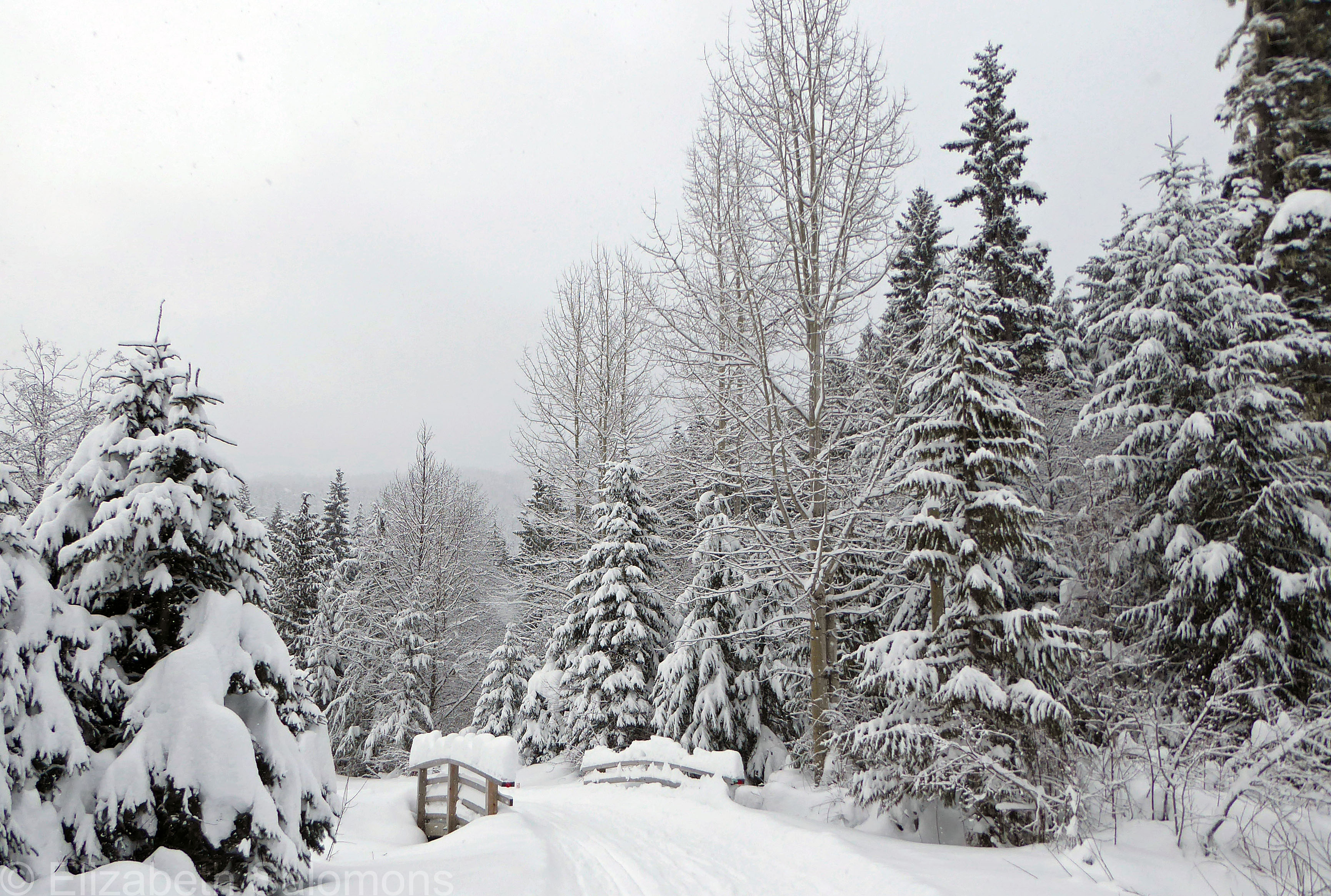 I took this photo on what turned out to be the highlight of my month: a weekend in Whistler. It snowed pretty much the entire time we were there, and my friend and I pretty much walked out our door with our snowshoes on and were upon this scene within minutes.