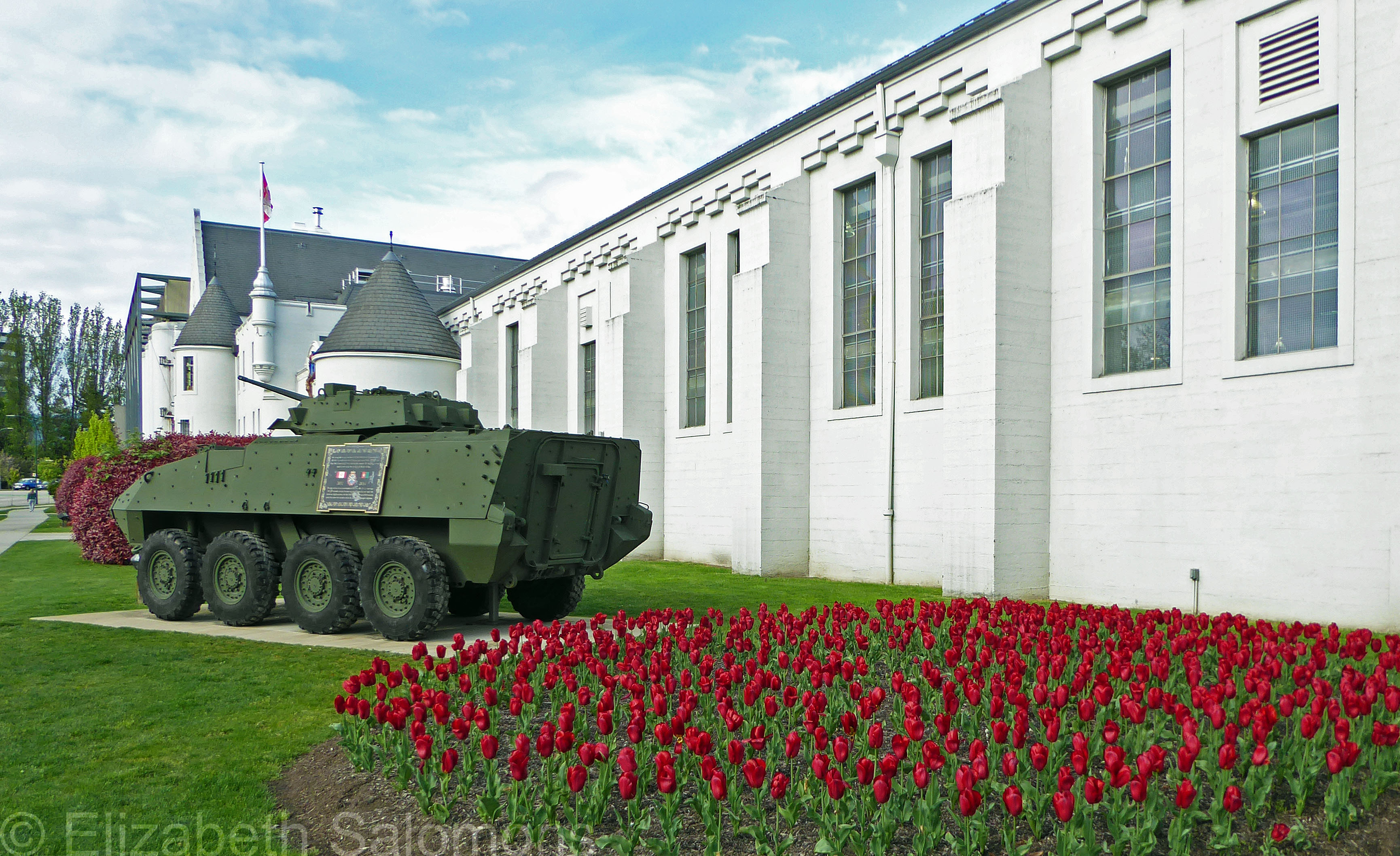 Here then is a photo I took last week of one of those tulip patches. These 800 bright red “Canadian Liberator” tulips are blooming in front of the Seaforth Armoury in Kitsilano, home to the Seaforth Highlanders. The regiment was involved in liberating Amsterdam in 1945 and about 40 of its members were planning to travel to Holland this month. Although the march into Amsterdam they intended to recreate on May 8 will not be happening, Canadians still appreciate the service those veterans gave our country and are thankful on behalf of the Dutch citizens they liberated.