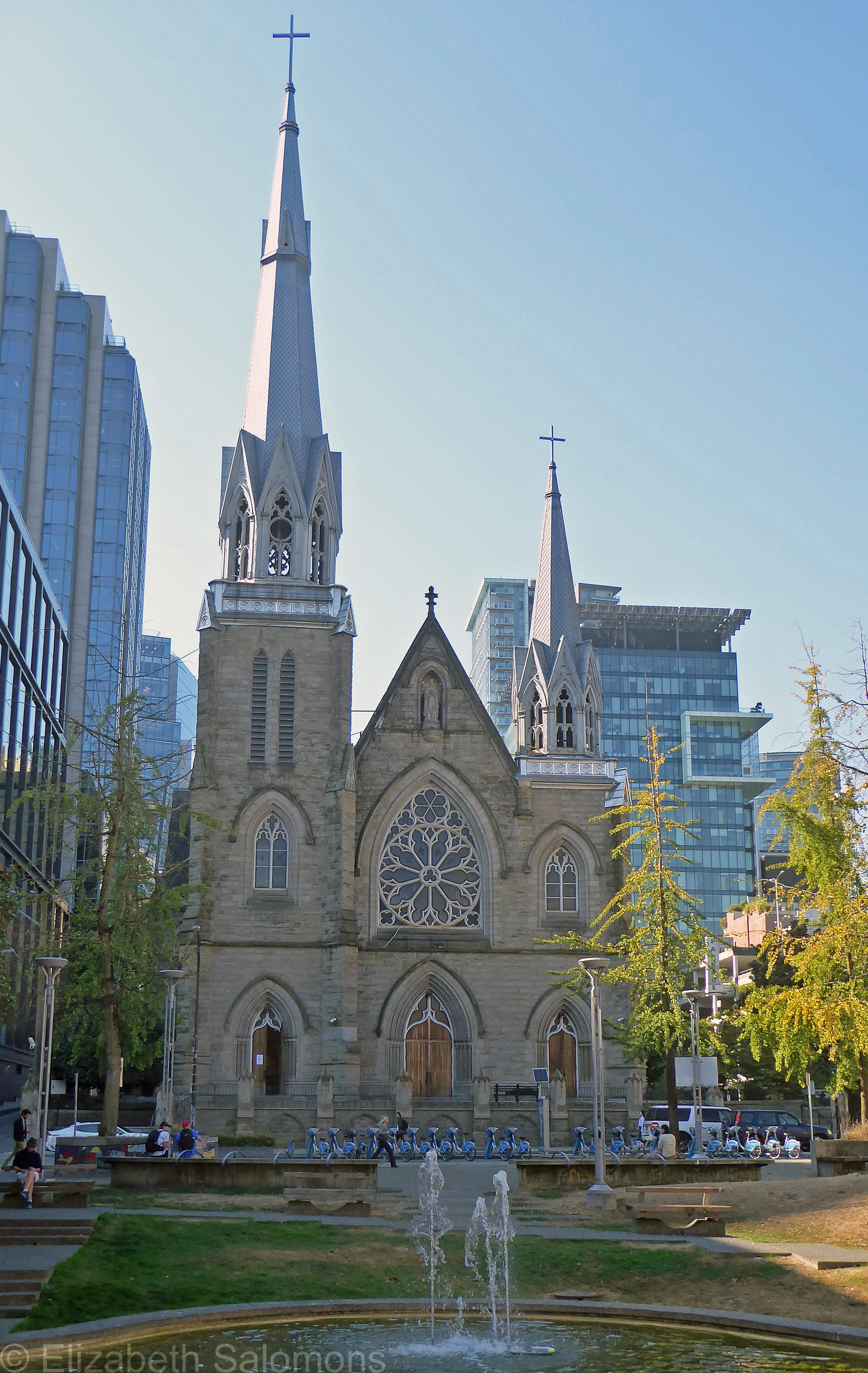 It seems like five minutes ago we were facing the start of winter and now, here we are, already back in the Season of Lent. For this year’s Lenten series, I’m going to take you on a tour of the churches of downtown Vancouver. My photo choice for today, the First Sunday of Lent, is Holy Rosary Cathedral. Its full name is the Metropolitan Cathedral of Our Lady of the Holy Rosary, and it serves as the cathedral for the Roman Catholic Archdiocese of Vancouver.
