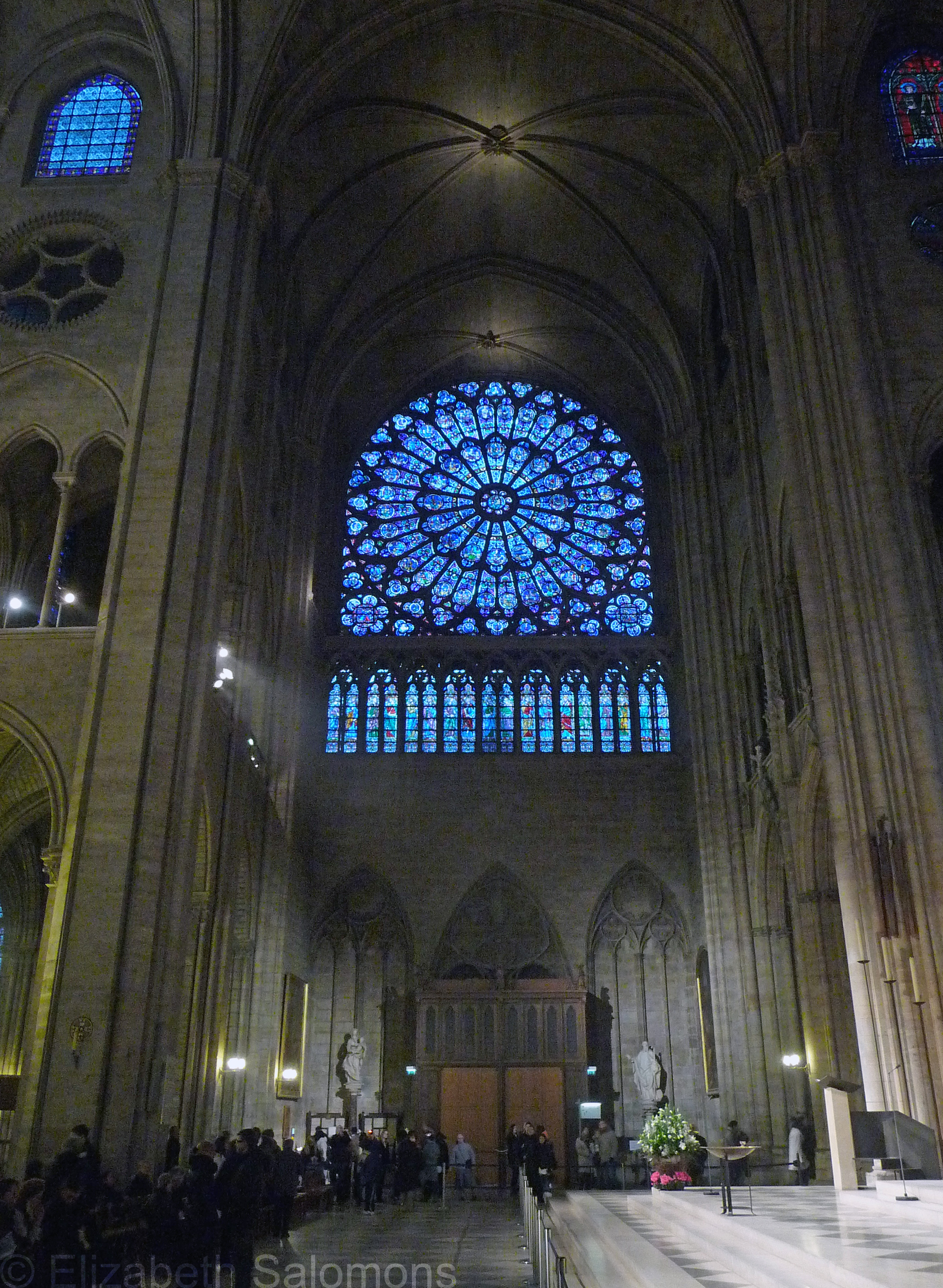 As I read about the opening of Notre-Dame last weekend, I was stunned by the photos of the Cathedral’s interior. It’s unrecognizable to me. By way of comparison, here is a photo I took of the Blue Rose window in January 2011, the last time I was inside Notre-Dame. The walls were covered in soot, and seemed weighed down by years of history. Now, those same walls are luminous and full of life.