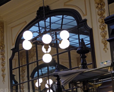 We walked in through the revolving doors and were quickly seated. The décor looked like something out of a Belle Époque movie set, with coat racks set high above a cavernous room lined with mirrored walls and filled with endless rows of tables lit by giant globe light fixtures.