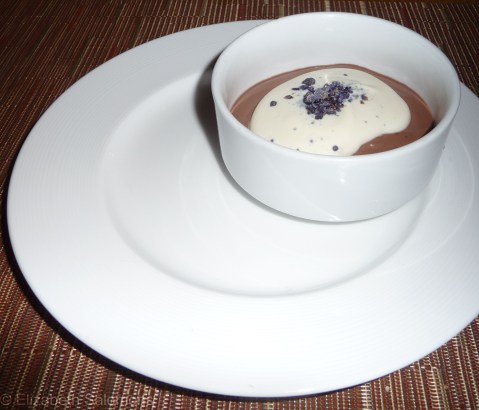 Market’s Dine Out menu offered a choice between two items for each course. I started with a roasted carrot and avocado salad with sour cream, citrus, and seeds. The carrots were slender and deliciously crunchy, cooked just long enough to not be raw. For my entrée, I choose the fish: slow-cooked snapper on a bed of sautéed spinach with a sweet garlic lemon broth. The lemongrass in the broth totally made this dish. Dessert was chocolate pudding with a light, foamy dollop of whipped cream, topped with candied violets. Can one ever go wrong with chocolate pudding? I think not.