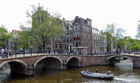 In Amsterdam, it’s entirely possible to walk the length of a canal without crossing it once. Where it intersects with another canal, you have the option of making a sharp turn left or right to start walking alongside that other canal. And at each one of those intersections, the bridges (there some 1500 of them in Amsterdam) go both over a canal while also going beside the other, intersecting, canal.