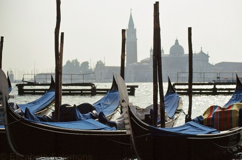 Someone near and dear to me is enjoying the sweet life in Venice this week. And so: here’s a photo of Venetian gondolas moored at Piazzetta di San Marco.