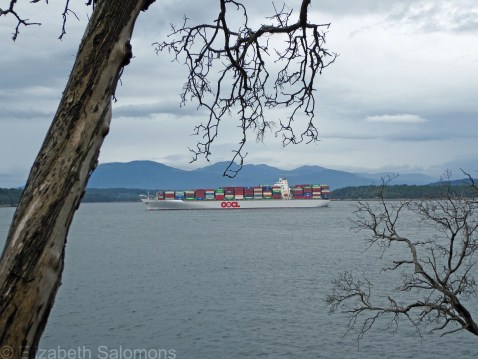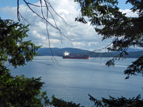 I learned on my last visit to Galiano Island that freighters like to park themselves just off the northern tip of the island while waiting for an empty berth at the Port of Vancouver. English Bay always has a number of waiting freighters as well, but when the bay is full, those ships have to look elsewhere for a place to anchor and wait. Vancouver is Canada’s largest and busiest port, with 3000 ships arriving every year. That’s a lot of ships and an awful lot of waiting time.