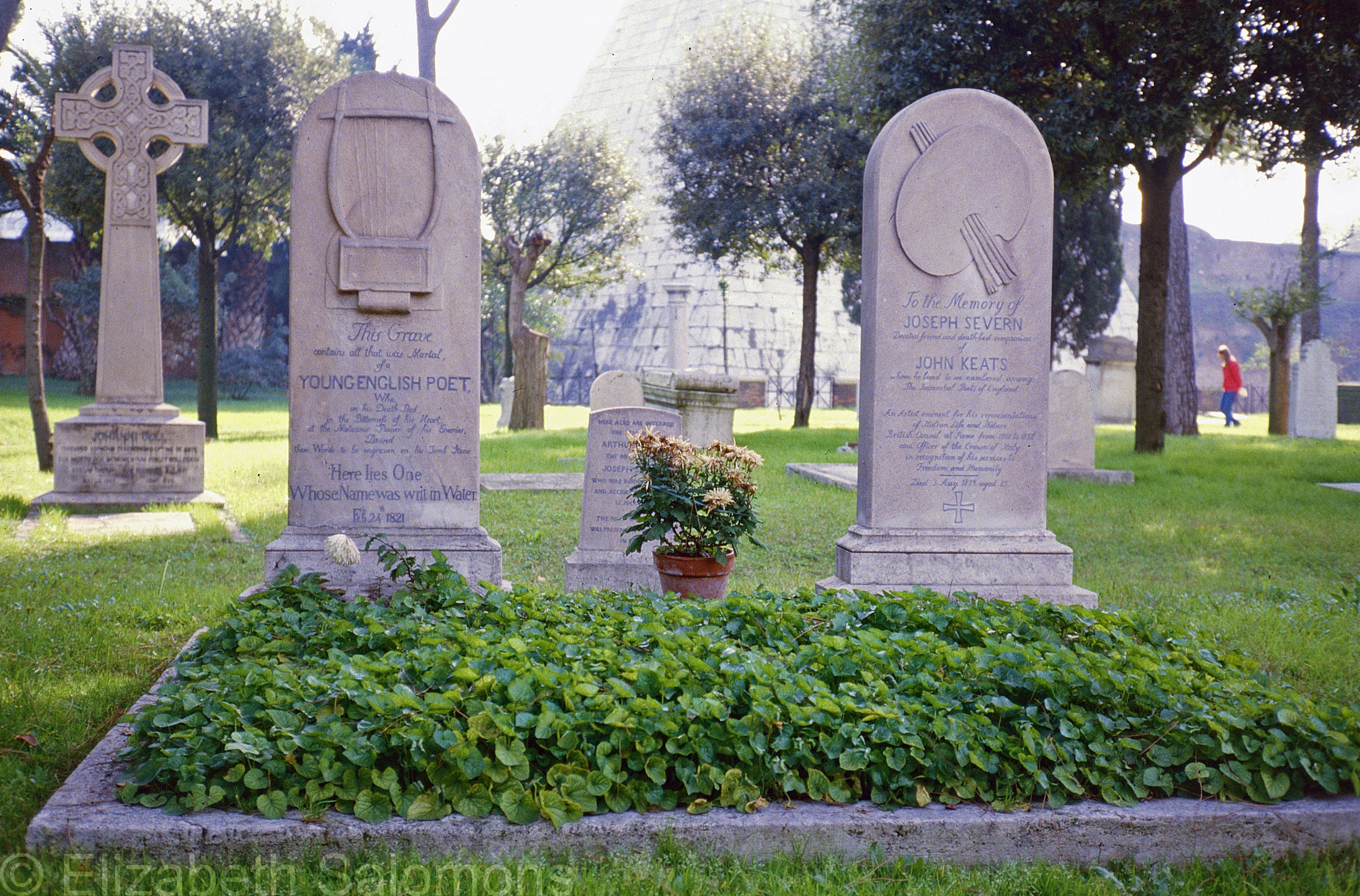 But those young poets never left me, in their way, and so, less than a year later, I found myself wandering through a Roman cemetery looking for John Keats’ headstone. He died of consumption — what we now know as tuberculosis — on February 23, 1821. Like so many ex-pats in Rome, he was buried in the Protestant Cemetery. Unlike most people, he insisted his headstone not bear his name, but rather “Here lies One Whose Name was writ in Water.”